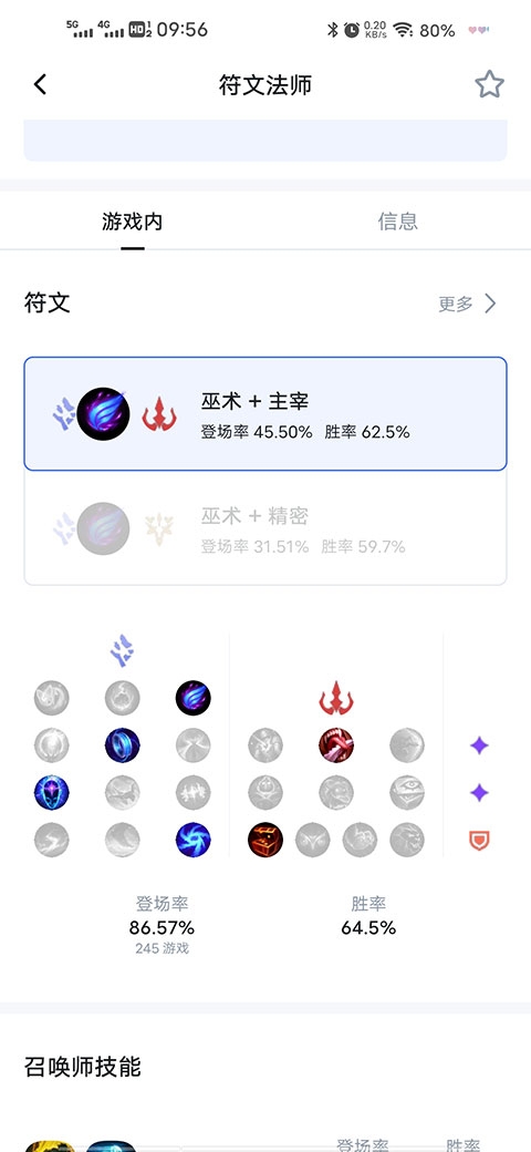 5、进入之后,就可以查看到该英雄的登场率和胜率。