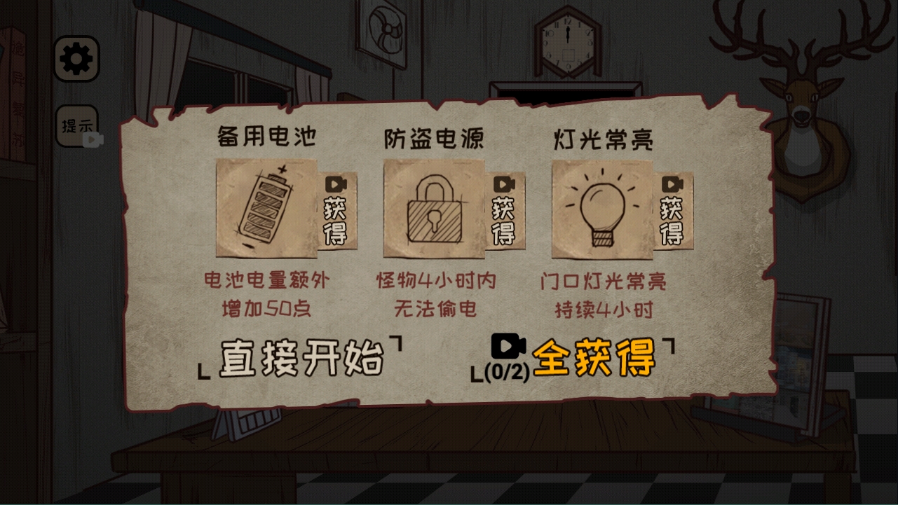10、任务完成,你可以选择看视频获得备用电池或者防盗电源。