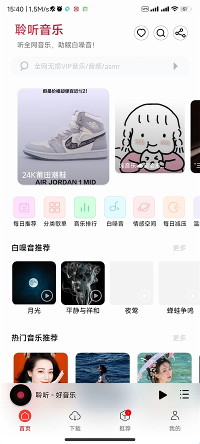 2、在主界面可以看到众多推荐的音乐,找音乐更加轻松