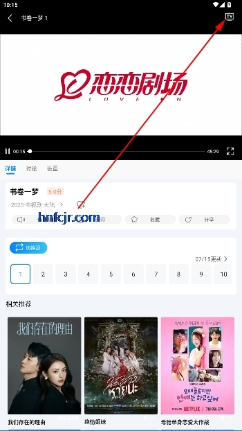 打开要投屏的视频,点击右上角的“投屏”按钮。
