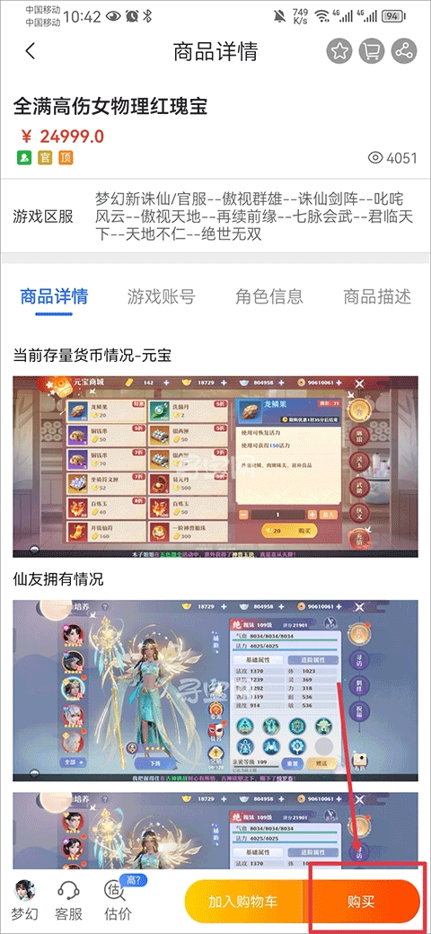 3、例如诛仙,进入该游戏商城列表后,挑选出你喜欢的商品进入