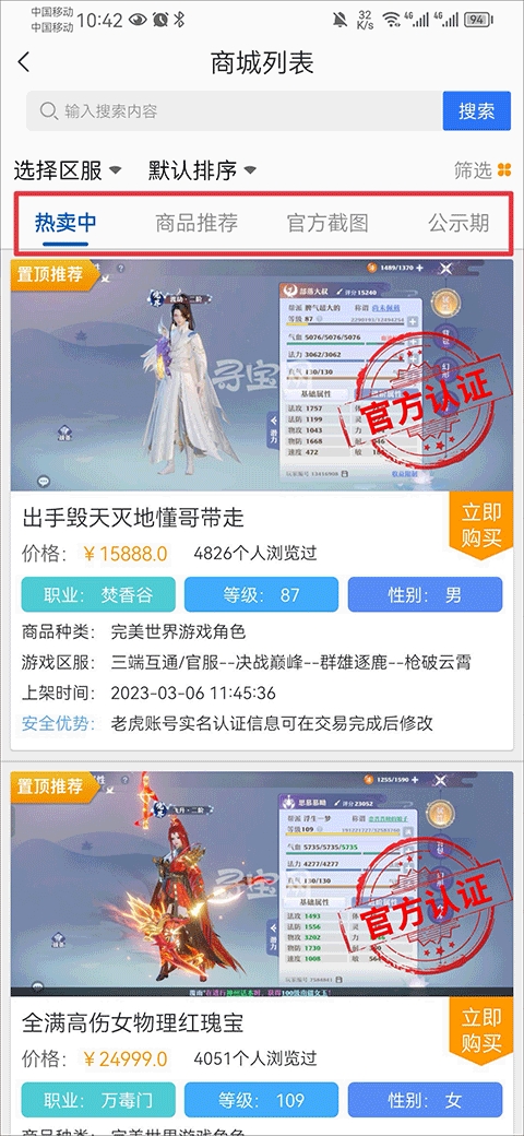 4、平台与完美世界官方合作,确保所有商品均经过严格审核,放心交易。