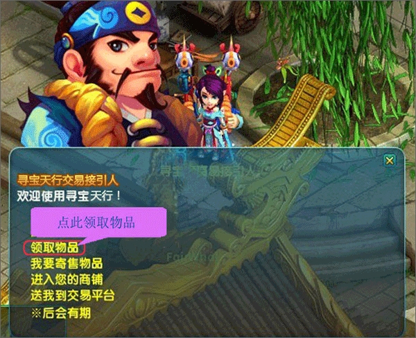 6、买家确认付款,交易成功后,可进入游戏内找到交易平台的NPC,即可取出在交易平台购买成功的物品。
