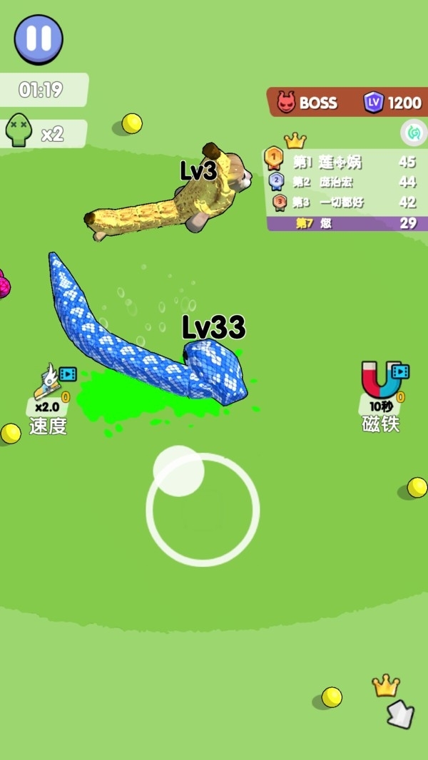 2、单手就能控制小蛇移动,轻松的去吞噬这些,更好的来移动。