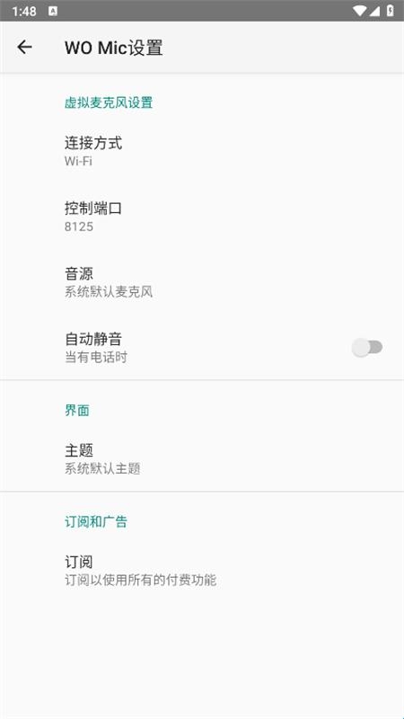 9、在手机上启动WOMic。在启动服务器之前,您可以转到“设置”以配置您喜欢的内容。