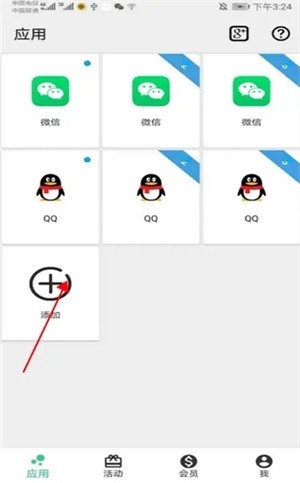 2、点击加号之后,我们就可以选择手机中的任意一个应用开始双开运行了,如图所示