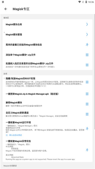 2、打开功能区中的magisk专区,我们可以看到以下详细信息;