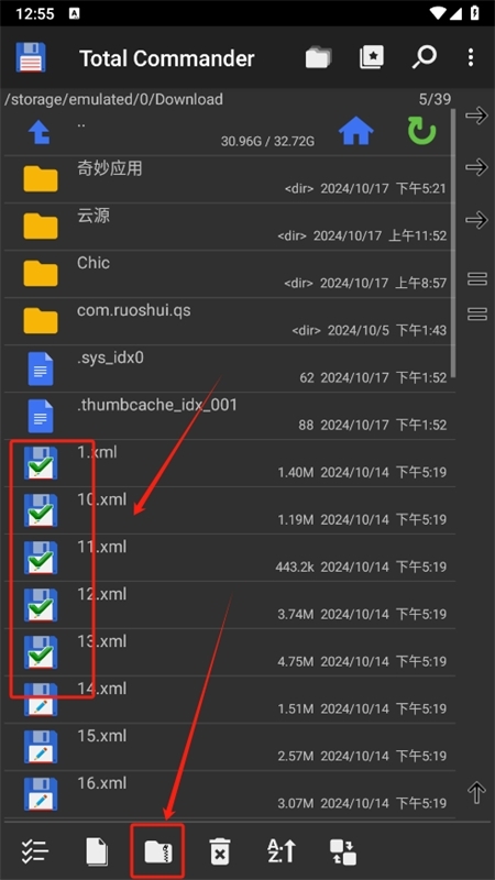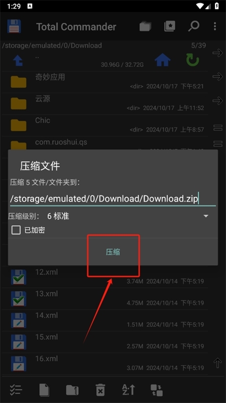 2、选中你想要压缩的文件或者应用,点击下方的压缩按钮