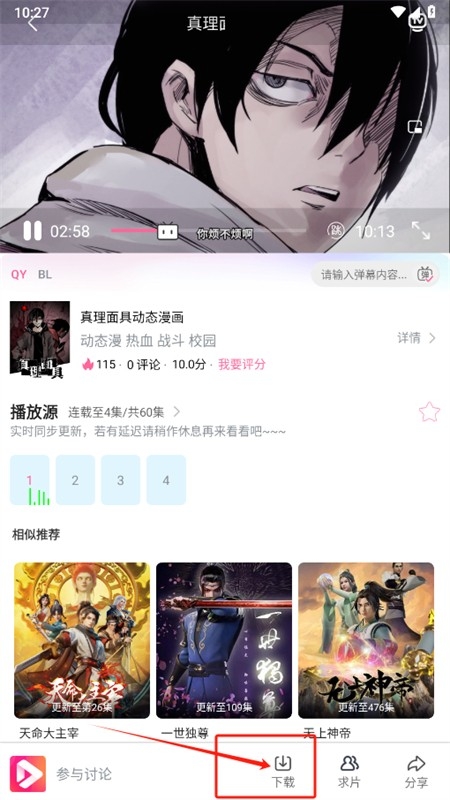 3、进入播放页面可以直接观看,还可以点击下载按钮快速下载到本地观看