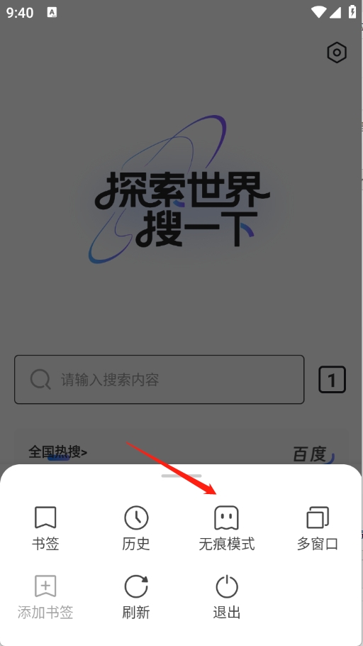 2、点击“无痕模式”。