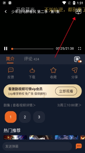 选择目标动漫并进入播放页面。在播放界面的右上角找到【投屏】按钮,点击它以启动投屏功能。