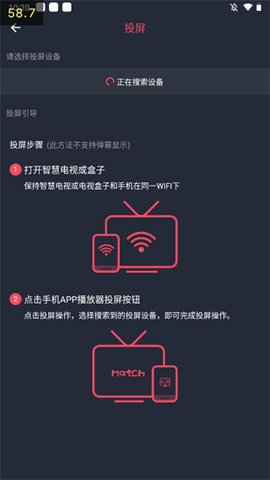 4、需要注意的是智能电视需要与手机在同一网络环境。