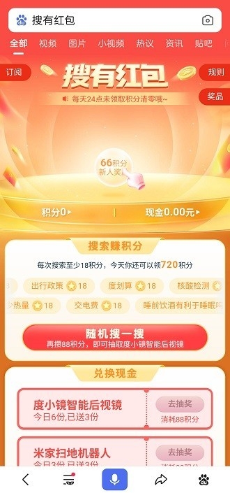 2、在百度应用程序的搜索框中键入“搜有红包”,然后进行搜索。