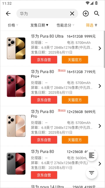 3、由于手机厂商的天猫官方店和京东自营店,是开发者的推广链接,因此如果跳转查看的话,京东会跳转到网页,天猫会打开手机淘宝;
