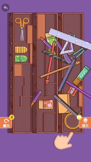 4、当出现无法收纳的情况时,可以点击提示帮助你过关。