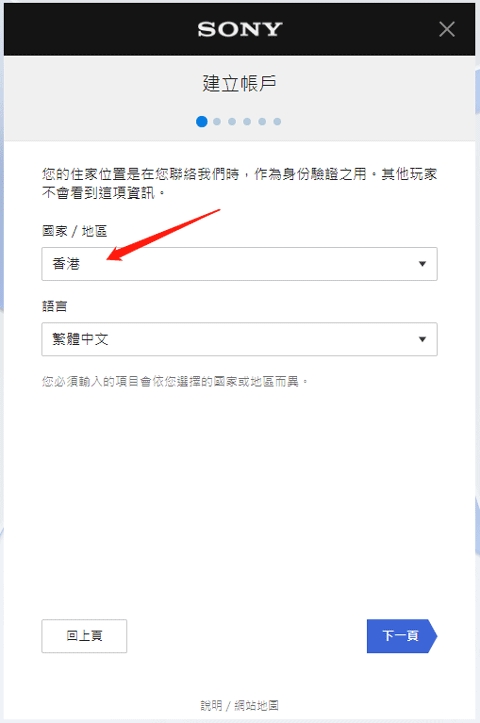 3、在选择国家地区时选择香港地区,然后根据步骤完成注册即可。