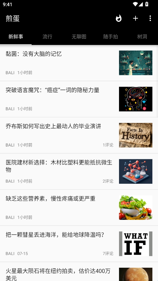 煎蛋是一个集资讯阅读、视频观看、社交分享等多重功能于一体的资讯平台。软件汇集了各类全球新鲜事、段子、妹子图、以及趣味问答内容,同时还能够随时和其他的伙伴一起进行点赞吐槽,结识更多有相同话题的陌生人。