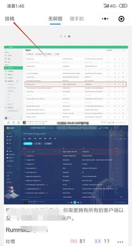 4、然后在手机相册里面选择自己要投稿的图片,共有无聊图和随手拍两种分区。