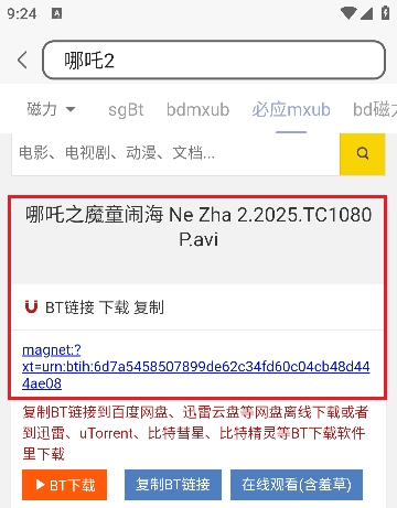 5、点击其中一条搜索结果,就能进入到磁力下载页面,如图所示。