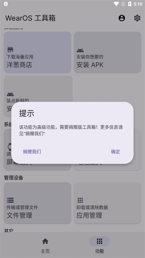 4、连接设备:接着,打开“wearOS工具箱”软件,确保两个设备处于同一网络环境下。在主页的“设备地址”栏中输入之前记录的IP地址,即可完成连接。