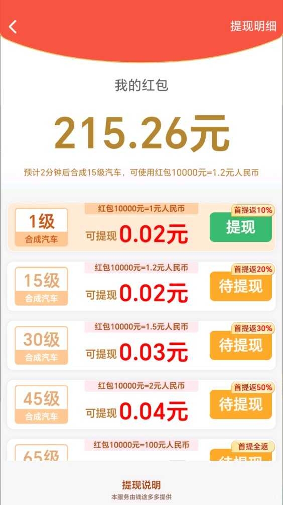4、合成出的小车等级越高,能够获得的红包越丰厚。