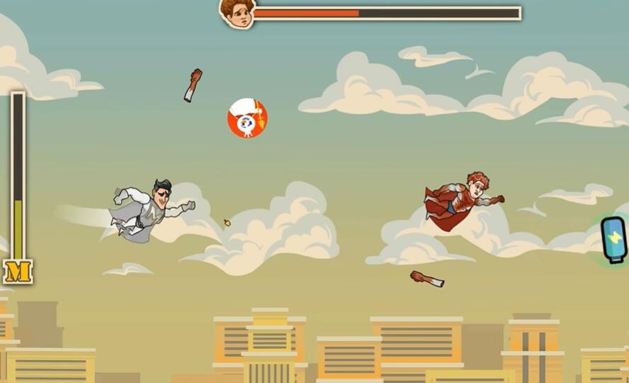 2、简单的横版闯关游戏,通知超人来守护目标任务,你要为他规避危险。