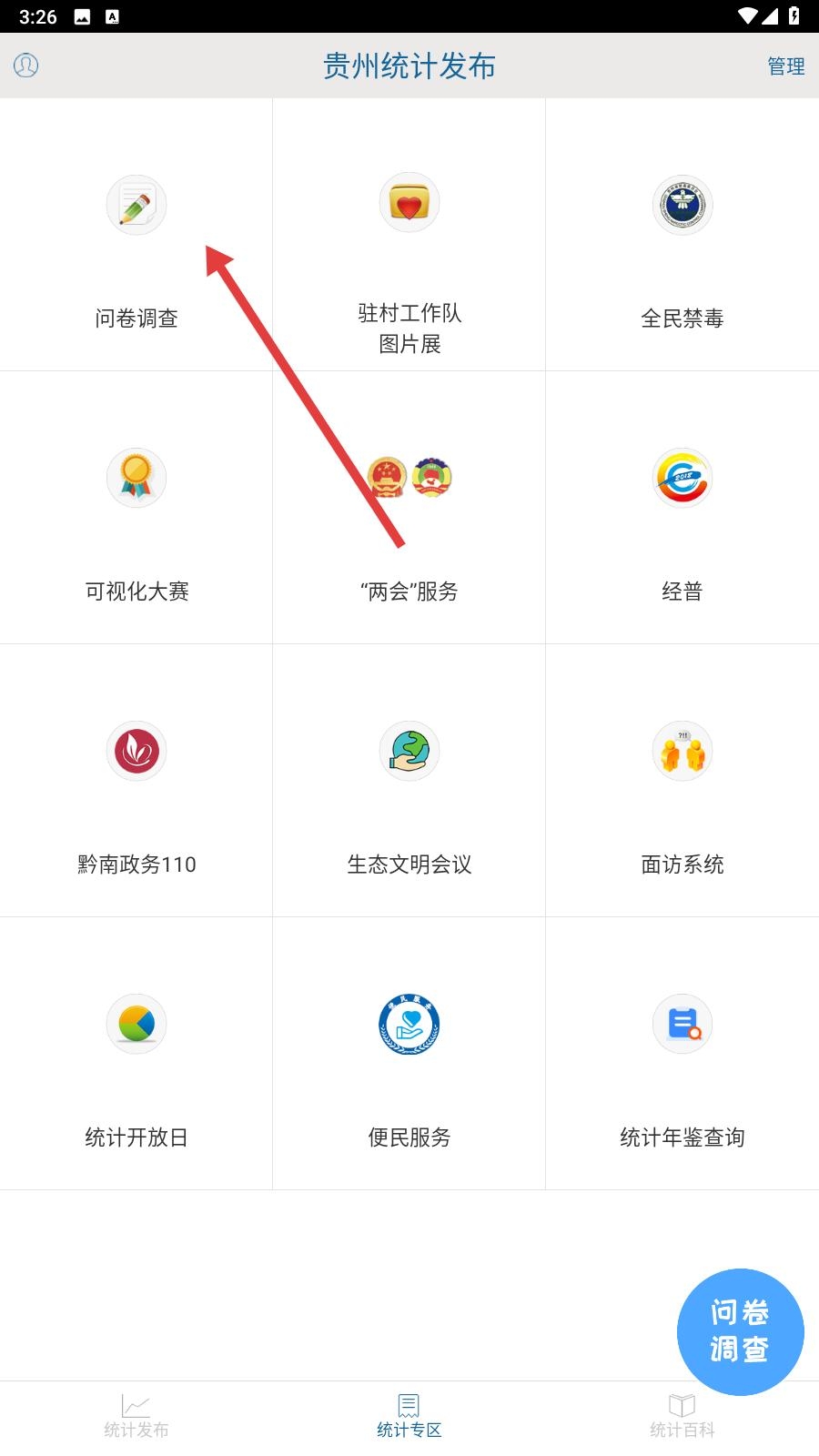 3、统计发布页面设问卷调查悬浮按钮,点击可参与统计调查,反馈数据,为本地统计工作提供支持。