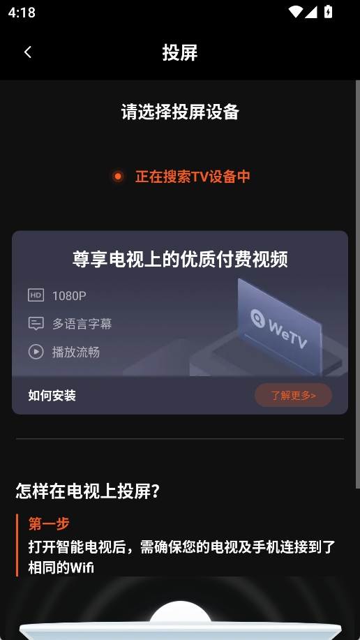 3、确保手机与电视处于同一Wi-Fi网络,选择目标设备即可开始投屏。