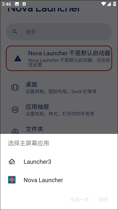 5、点击^符号,选择nova设置进入,可进行自定义设置;