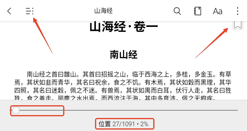 4、点开目录页面还可以上下拖动,让用户快速跳动到指定章节。