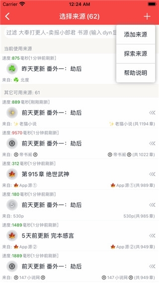 1、在书架的右上角菜单,选择书源配置。