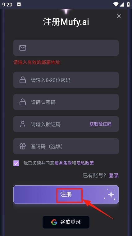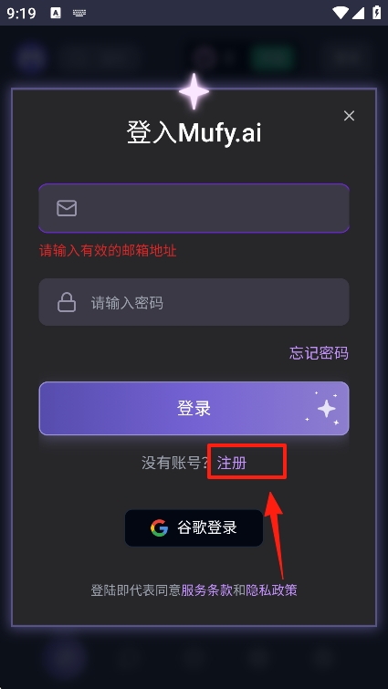 1、打开mufy ai app,首次打开软件的用户需要同意相关的协议。