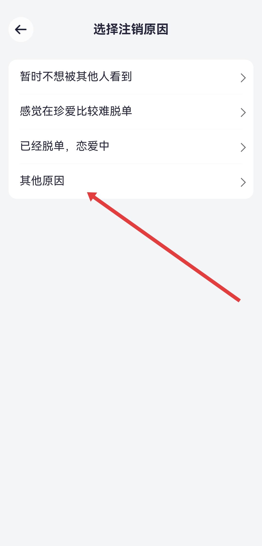 4、在选择注销原因页面,选择合适的注销原因,完成账号注销操作。