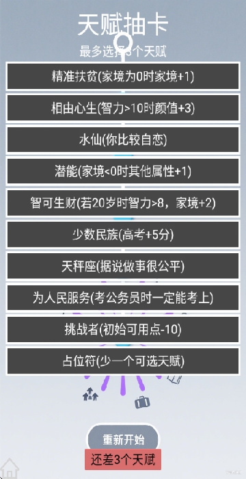2、根据自己的人生模拟,还可以更好的来策略制定最佳的天赋组合。