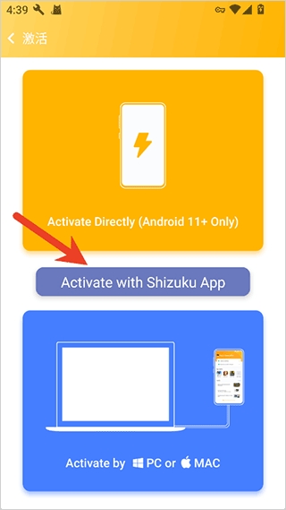 3、然后点击【使用Shizuku激活】