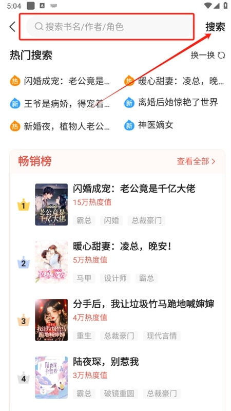 2、进入软件后可以在首页寻找好看的小说作品,也可以根据需求点击上方的搜索按钮查找小说