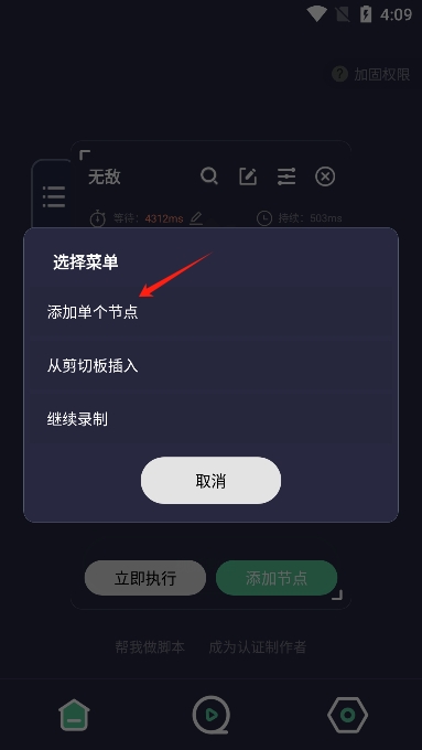 6、脚本制作完成后你可以选择立即执行或是添加节点