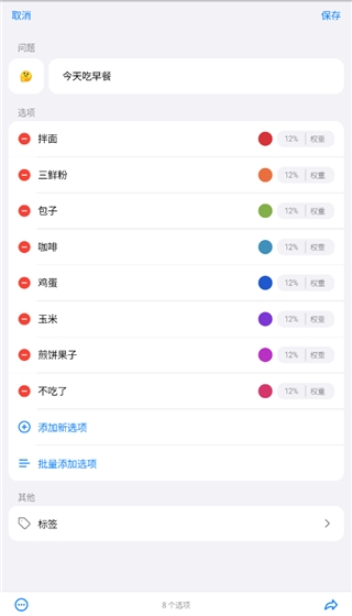 5、便捷设置个性化的转盘,包括配色、选项权重、模板等,任意的选择和设置。