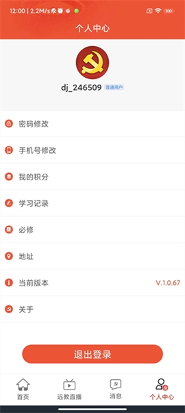 5、最后在我们板块中用户可以进行密码的修改,还可以查看自己的学习记录和积分。