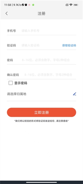 2、在这里填写好自己的个人信息,填写完之后选择归属地即可;