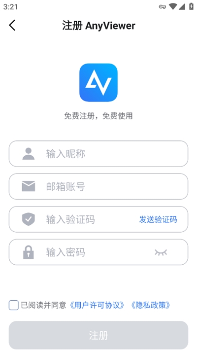 1.进入软件后需要注册一个账号,注册账号可以使用一个邮箱注册,安全免费。