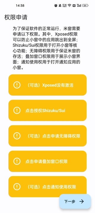 6、当权限都完成之后就可以点击下一步进行使用了。