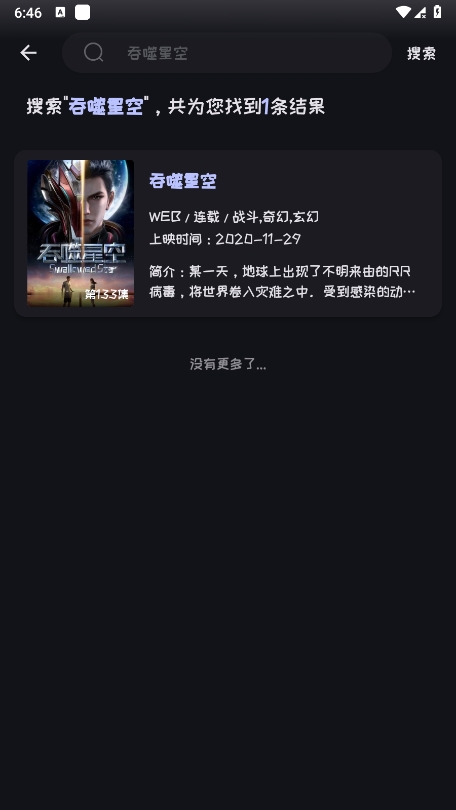 4、如搜索吞噬星空,即可出现您想看的资源。