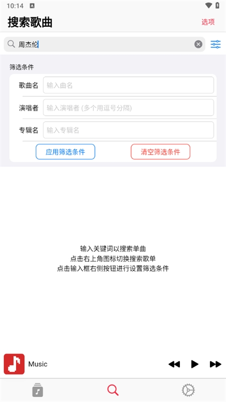 2、智能搜索工具支持,通过歌词、歌名名称、歌手、专辑均可搜索到相关歌曲。