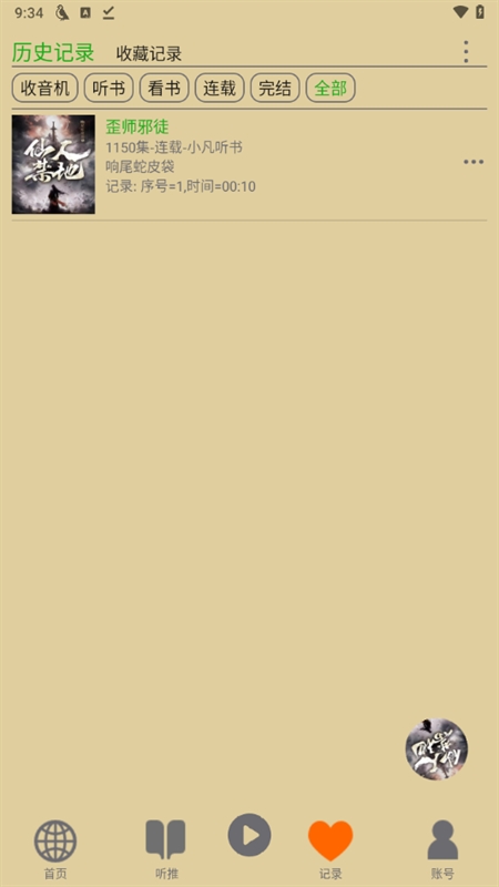 4、在记录界面下,我们能够看到自己的历史记录以及收藏记录。