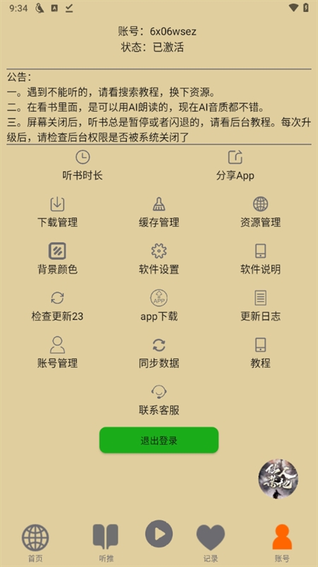 5、在账号界面下,我们可以进行下载管理、缓存管理、资源管理、背景颜色修改等一系列操作。