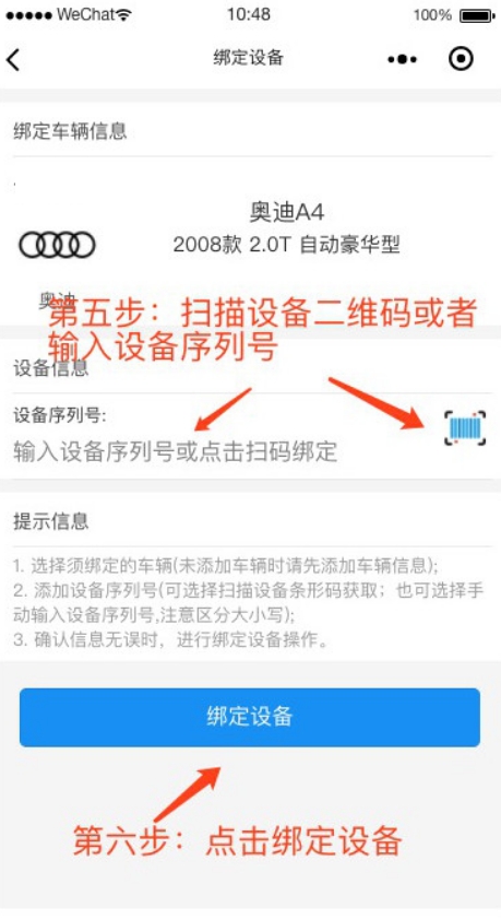 5、扫描设备二维码或者输入设备序列号,点击绑定设备