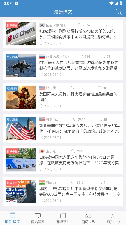4、实时新闻报道:提供当前最新国际新闻报道,包括原文和网民评论的翻译。
