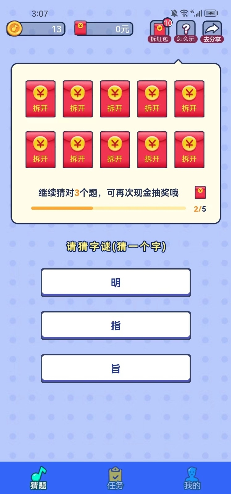 乐猜字谜是一款非常好玩有趣的答题赚钱类型软件,这里通过猜字谜闯关,考察大家的字谜储存量,用户如想要进行这类智商的解答就需要选择自己擅长的题库,然后如果我们真的通关整个题库还会有红包可以拿,快来下载乐猜字谜试试吧!