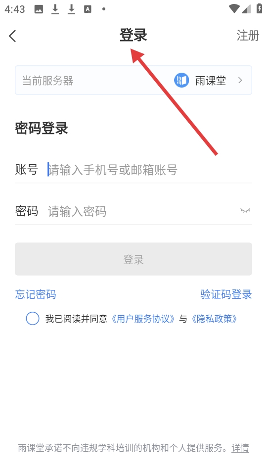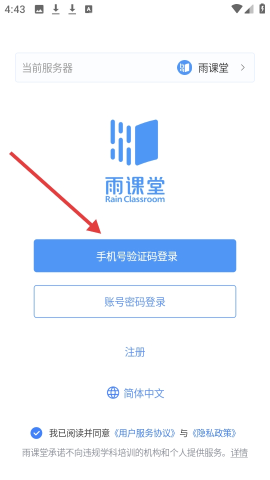 2、雨课堂登录界面,展示品牌标识,设有手机号验证码与账号密码两种登录途径并有注册入口。